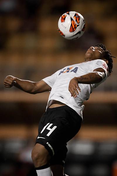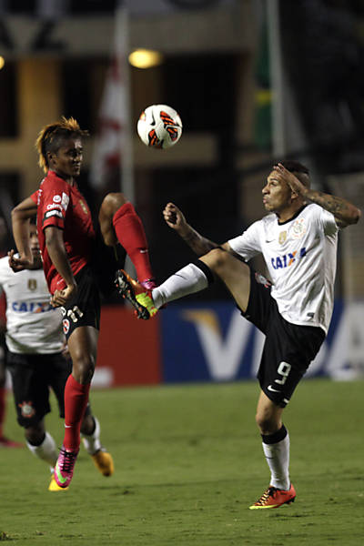 O corintiano Romarinho domina a bola durante partida contra os mexicanos do Tijuana em disputa no Pacaembu