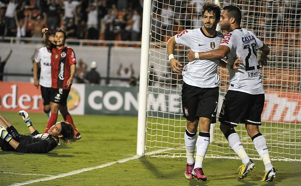 Não foram poucas vezes que Renato Augusto e Alessandro conseguiam invadir a área com certa liberdade. Aos 26min, o meia invadiu a área, finalizou com força e bola bateu três vezes na trave antes de Pato completar para a meta vazia.